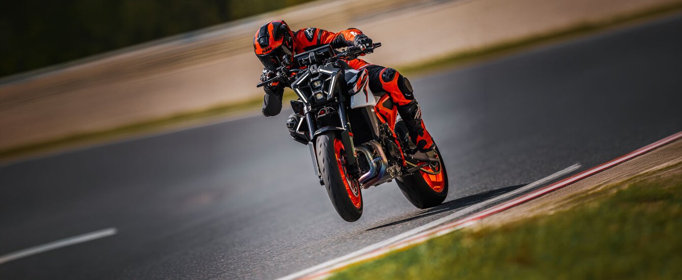 Sportlicher in der Haltung, zielstrebiger in der Anwendung und auf das Äußerste aufgerüstet. Die KTM 990 DUKE R bringt zusätzlichen Schwung in den mittelschweren Naked-Markt mit maximalem Kampfgeist, der dich schneller und weiter bringt. Sie ist für die Mitnahme eines Sozius zugelassen und wird als Einsitzer mit separat erhältlichen Soziusanbauteilen verkauft. Sie setzt neue Massstäbe mit einer gesteigerten Leistung von 130 PS und bietet eine schärfere Ergonomie, gepaart mit einem verbesserten WP APEX Fahrwerk und noch nie dagewesenen elektronischen Funktionen. Entworfen, entwickelt und produziert in Österreich.